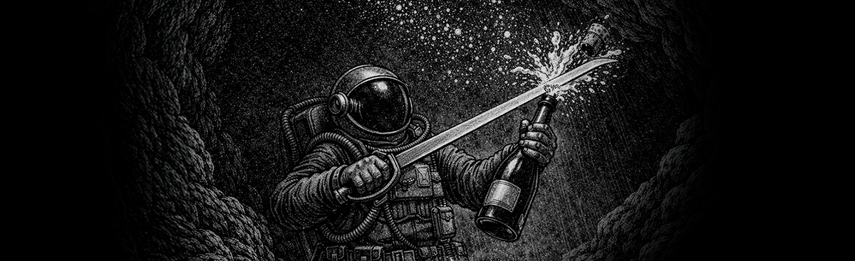El sabrage aparece al final, como cierre natural de todo lo que pasó antes. No es el centro, es la coronación.